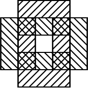 The following example demonstrates how to compute the symmetric difference between two sets that contain holes. Each set is a rectangle that contains a rectangular hole in its interior, such that the symmetric difference between the two sets is a single polygon that contains of five holes: