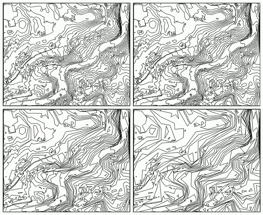 This tutorial illustrates the following scenario. From an input point cloud, we first compute a DSM stored as a TIN. Then, we filter out overly large facets that correspond either to building facades or to vegetation noise. Large components corresponding to the ground are kept. Holes are filled and the obtained DEM is remeshed. A raster DEM and a set of contour polylines are generated from it. Finally, supervised 3-label classification is performed to segment vegetation, building and group points.