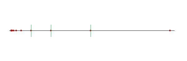 This example program has two 2-dimensional data sets: The first one containing collinear points with exponential increasing distances and the second one with collinear points in the first dimension and one point with a distance exceeding the spread of the other points in the second dimension. These are the worst cases for the midpoint/median rules and can also occur in higher dimensions.