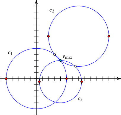 A vertex \(v\) of an arrangement induced by bounded curves is always associated with a geometric entity, namely with an Point_2 object, which can be obtained by v->point(), where v identifies a handle to \(v\).