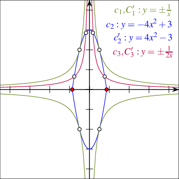 What constitutes valid curves that can be handled by the 2D Arrangements package is discussed in detail in Section The Geometry Traits, where the models of the traits classes are described. However, when we cite combinatorial complexity bounds or bounds on the resources (i.e., running time and storage space) required by algorithms, we often postulate stricter assumptions on the input curves. The prevalent term in use is that the curves are well behaved, which may have different interpretations in different settings. If we are concerned with combinatorial complexity bounds for curves embedded in a two-dimensional surface, then the standard assumptions are that (i) each curve is non-self-intersecting (a so-called Jordan arc) and (ii) every pair of curves intersects in at most some constant number of points. For algorithmic purposes we need to require more since we assume that any operation on a small constant number of curves takes unit time. In this sense arcs of algebraic curves of degree bounded by a constant (namely the zero set of bivariate polynomials of constant maximum total degree) are well behaved. Naturally, what are typically considered well-behaved surfaces in \(\mathbb{R}^3\) is even more complicated to state.