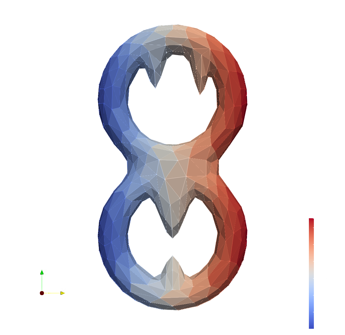 For geometric complexes, standard lower star filtrations are obtained by taking as a degree function the \(x\), \(y\) or \(z\) coordinate of vertices. The image below illustrates such a filtration ((left) lower star filtration with a \(z\) degree map on vertices, (right) lower star filtration with a \(y\) degree map on vertices).