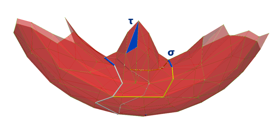 A(319, 623) between \(\sigma\) and \(\tau\). Middle figure illustrates that in the (non perfect) HDVF before A operation, \(g(\tau)\) is not a cycle but a chain bounded by \(q\)-cycles.A(319, 623) between \(\sigma\) and \(\tau\). Only the white 1-cycle remains (actually its persistent lifetime is infinite).