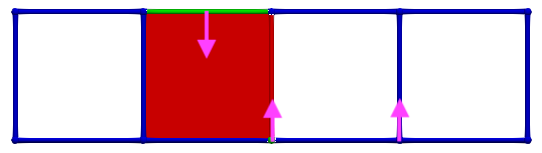 Let us consider \(\gamma_2 = (3,1)\) and \(\gamma_1 = (3,2)\), the condition for A is valid (-1 is invertible). The following images illustrates this pairing in discrete Morse theory "style" (pink arrow in left complex) and the resulting HDVF (right complex).