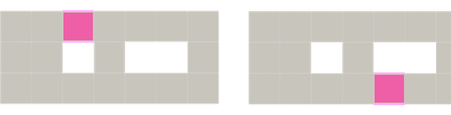 Figure 92.11 M operation on a cubical complex \(K\). Left: perfect HDVF over \(K\) with cells \((\pi, \gamma)\) meeting the M operation condition (blue: homology generator associated with \(\gamma\), pink: cohomology generator associated with \(\gamma\)); Right: perfect HDVF obtained with \(M(\pi,\gamma)\) and updated generators (associated to \(\pi\) which is now critical).