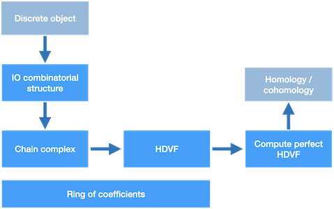In order to compute the homology/cohomology of a discrete object with an HDVF, the process is as follows: