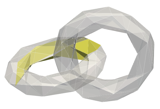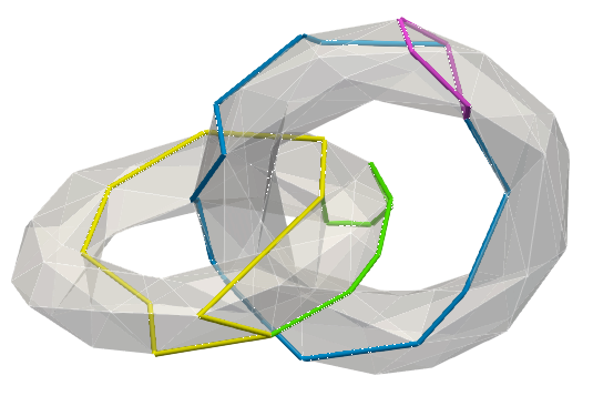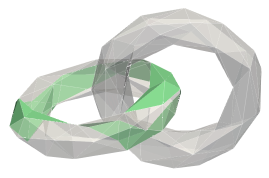 cell_index and dimension q,co_faces is true (sometimes easier to view cohomology generators)Below, a sample mesh with, (left) homology generators, (right) two examples of cohomology generators (corresponding generators/co-generators bear similar colours):