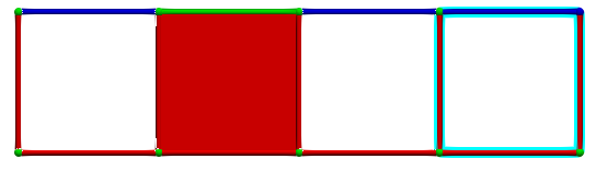OPT_BND): to get Betti numbersOPT_G): to get homology generatorsOPT_F): to get co-homology generatorsOPT_FULL): to get the full homological / cohomological informationLet us consider a simple cubical complex example (see Cubical chain complexes for an introduction). In what follows, PRIMARY cells are coloured green, SECONDARY are coloured red and critical blue. The picture below shows an initial empty HDVF where all cells are critical: