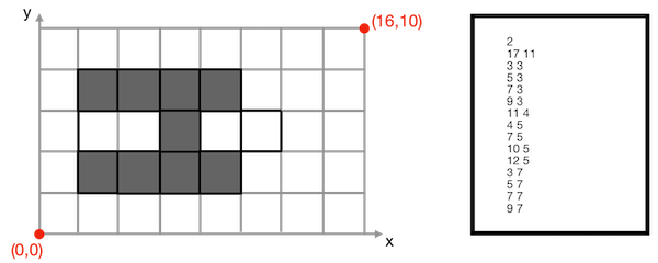 Figure 94.17 Example of cub file. Left: a cubical complex; Right: associated cub files describing maximal cells.