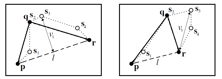 Let \(t_0,...,t_m\) be the points of the vertices adjacent to vertex q, different from p and r and let \( v_2 = \min \{ \mathrm{squared\_distance}((p,r),
