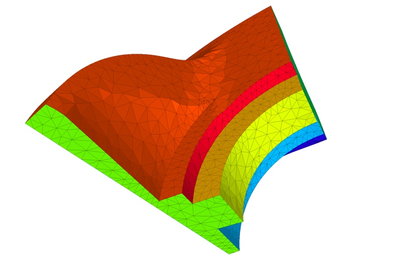 The following example shows how to generate a mesh from a polyhedral complex that forms a bounded domain. The domain is defined by a group of polyhedral surfaces that are conformal. For each facet of the input polyhedral surfaces, the ids of incident subdomains are known. The input surfaces intersect along polylines that are considered as sharp features, and protected as for all domain types in this Section.
