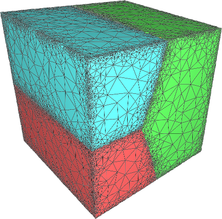 The following code produces a 3D mesh for a domain consisting of several subdomains. It uses Implicit_multi_domain_to_labeling_function_wrapper as model of ImplicitFunction which is required by Labeled_mesh_domain_3.