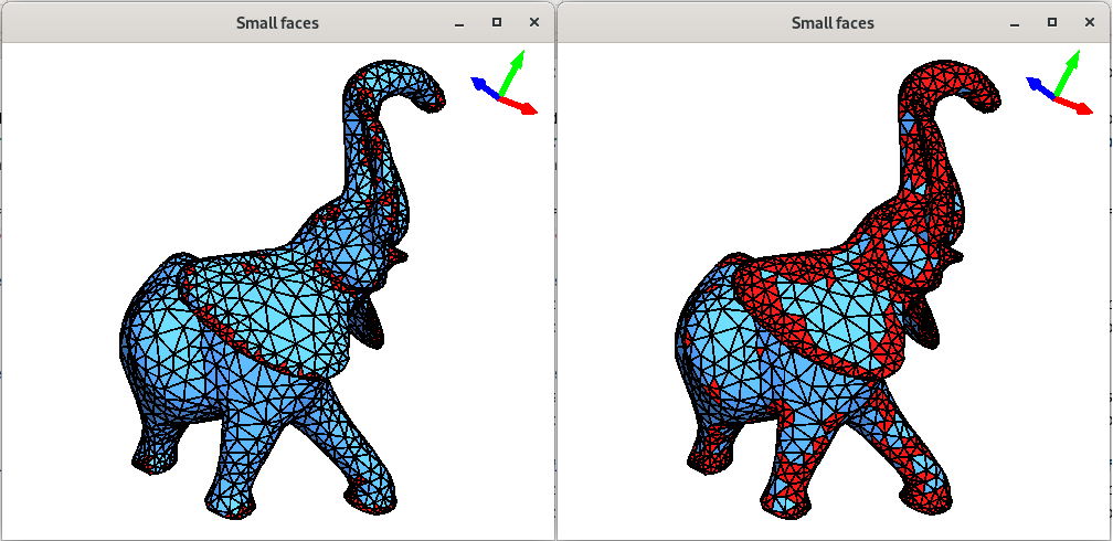 Figure 124.7 Two examples of drawing of a mesh with small faces in red. Left: With the initial threshold. Right: After having increased the threshold.
