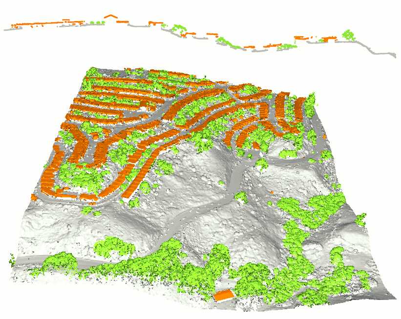 - DSM: Digital Surface Model, a model of the whole scanned surface including buildings and vegetation. We use a TIN to store the DSM.