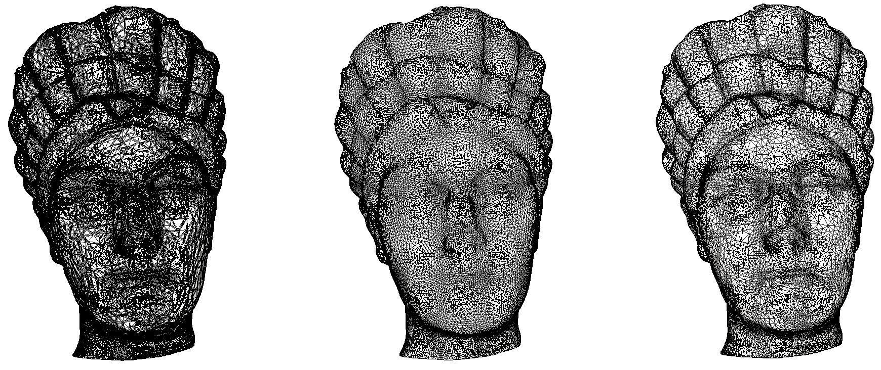 A triangulated region of a polygon mesh can be remeshed using the function CGAL::Polygon_mesh_processing::isotropic_remeshing(), as illustrated by Figure 77.2. The algorithm has two parameters: the sizing field object for the remeshed surface patch, and the number of iterations of the abovementioned sequence of operations.