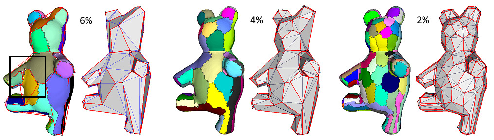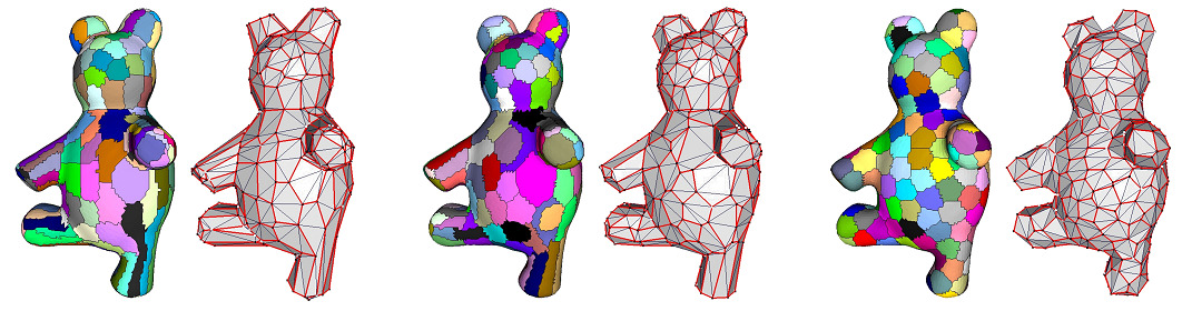 This package implements the Variational Shape Approximation [1] (VSA) method to approximate an input surface mesh by a simpler surface triangle mesh. The input of the algorithm must be:
